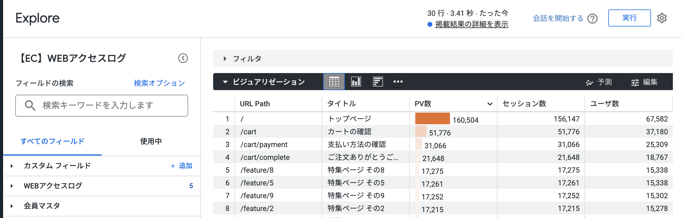というわけで、早速ECライクなデモデータに対してテストしてみます