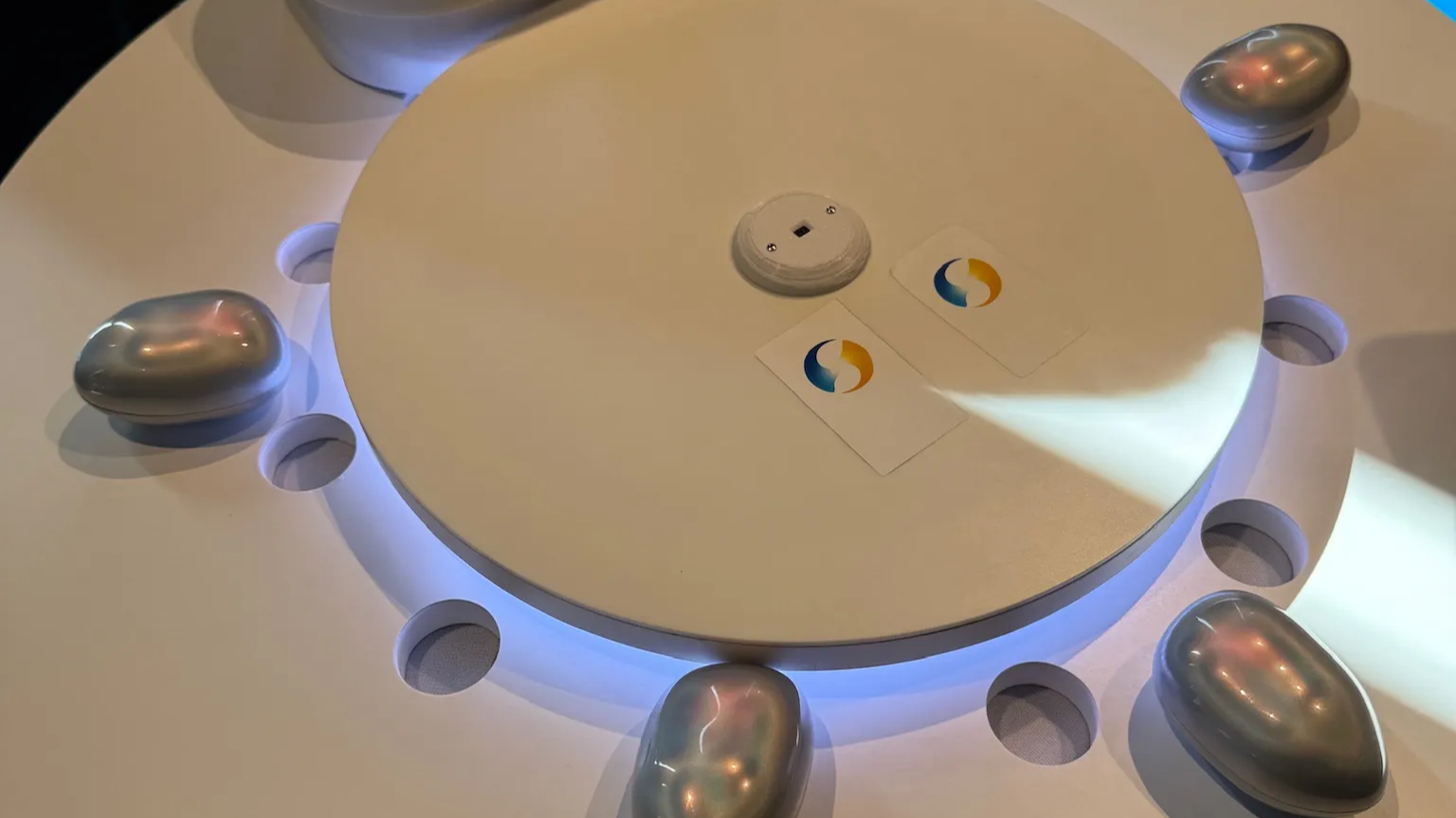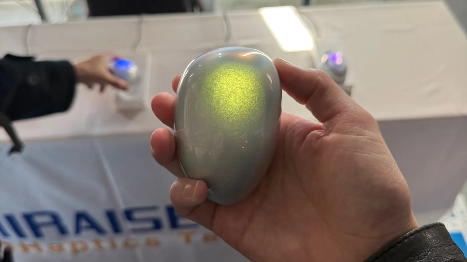 実物は手のひらサイズの丸い石ころのようなデバイスで、持つとどこか心地よい質感。