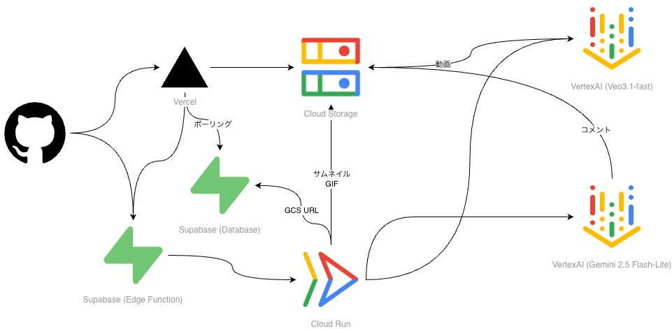 自分自身のスマホを使ってもらうことで参加のハードルをさげ、さらに知った顔を登場させることでなんとか見ていて退屈しない動画に、コストはかかりますがモデルを Veo3.1 Fast として 1 度だけ動画生成をやり直せるように、と課題へ対処しました。